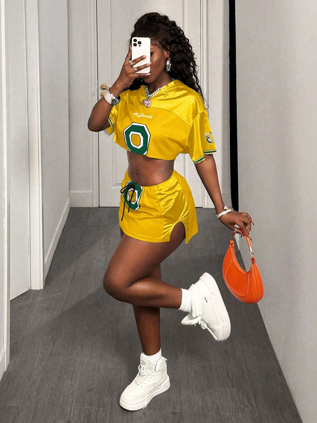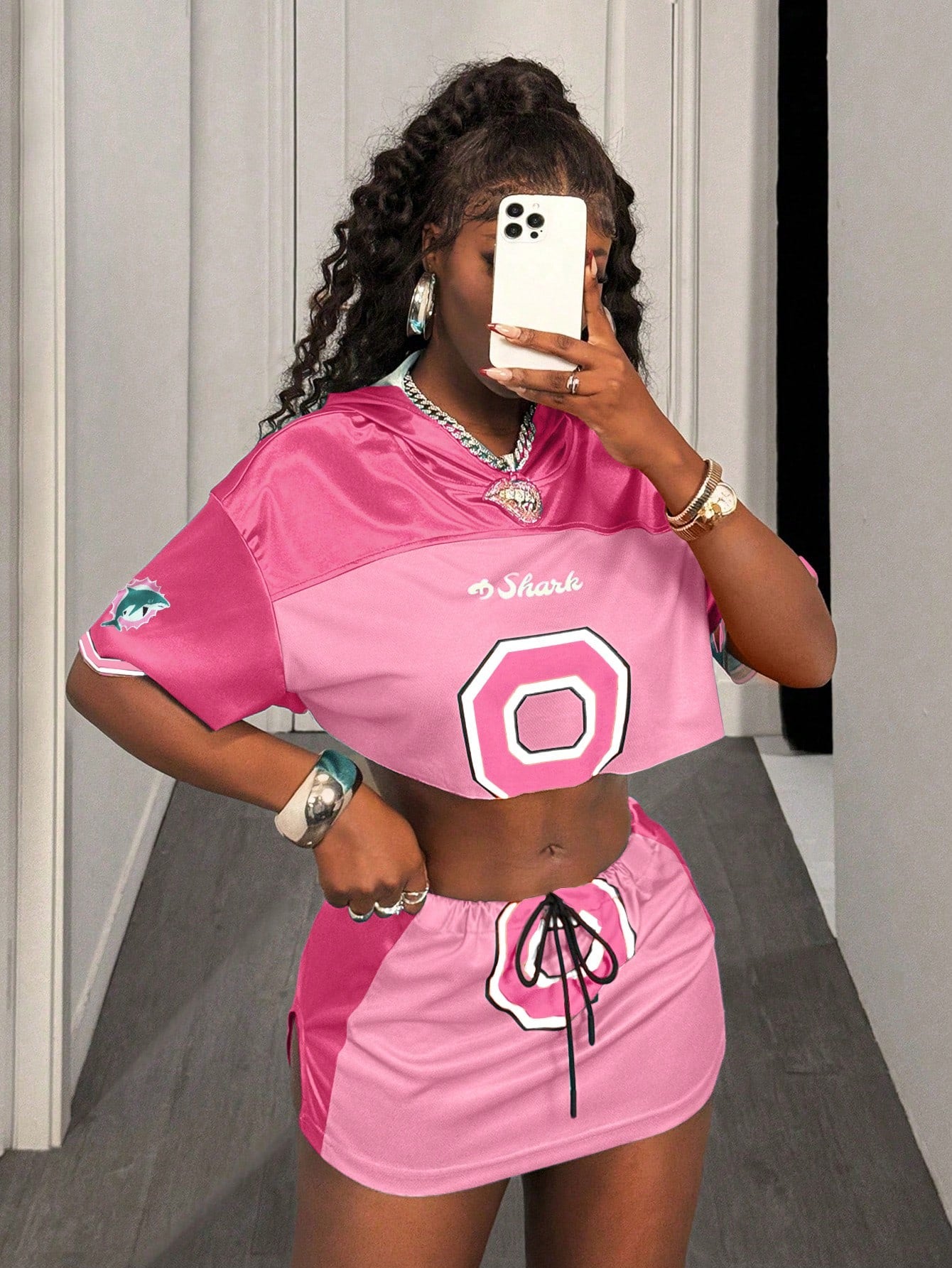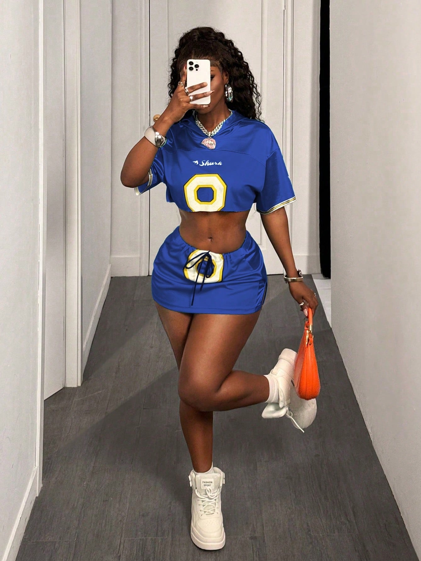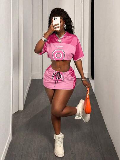 BamGleam 2 Pcs/Set Women Sports Style Short Sleeve Top And Skirt Suit
