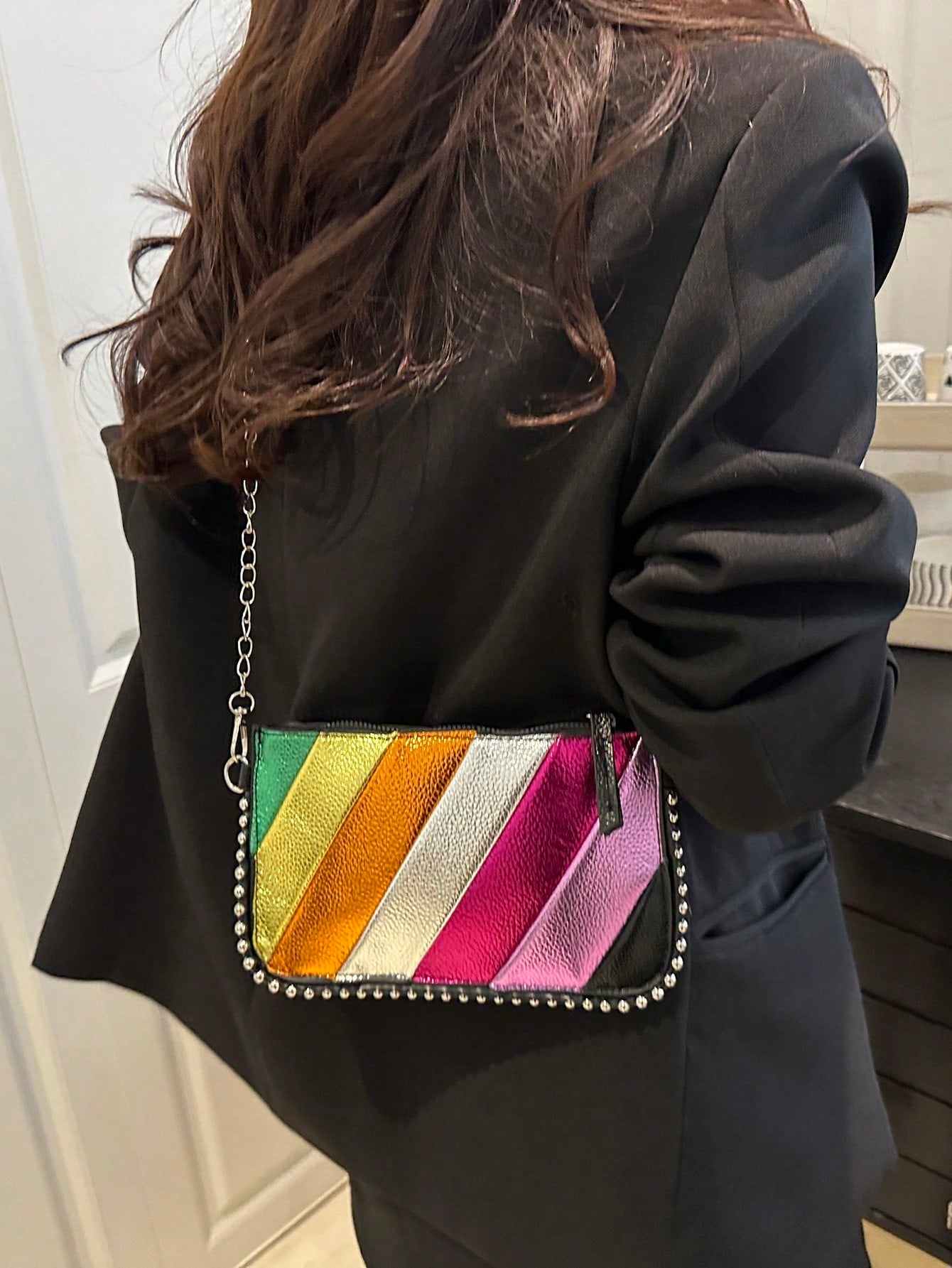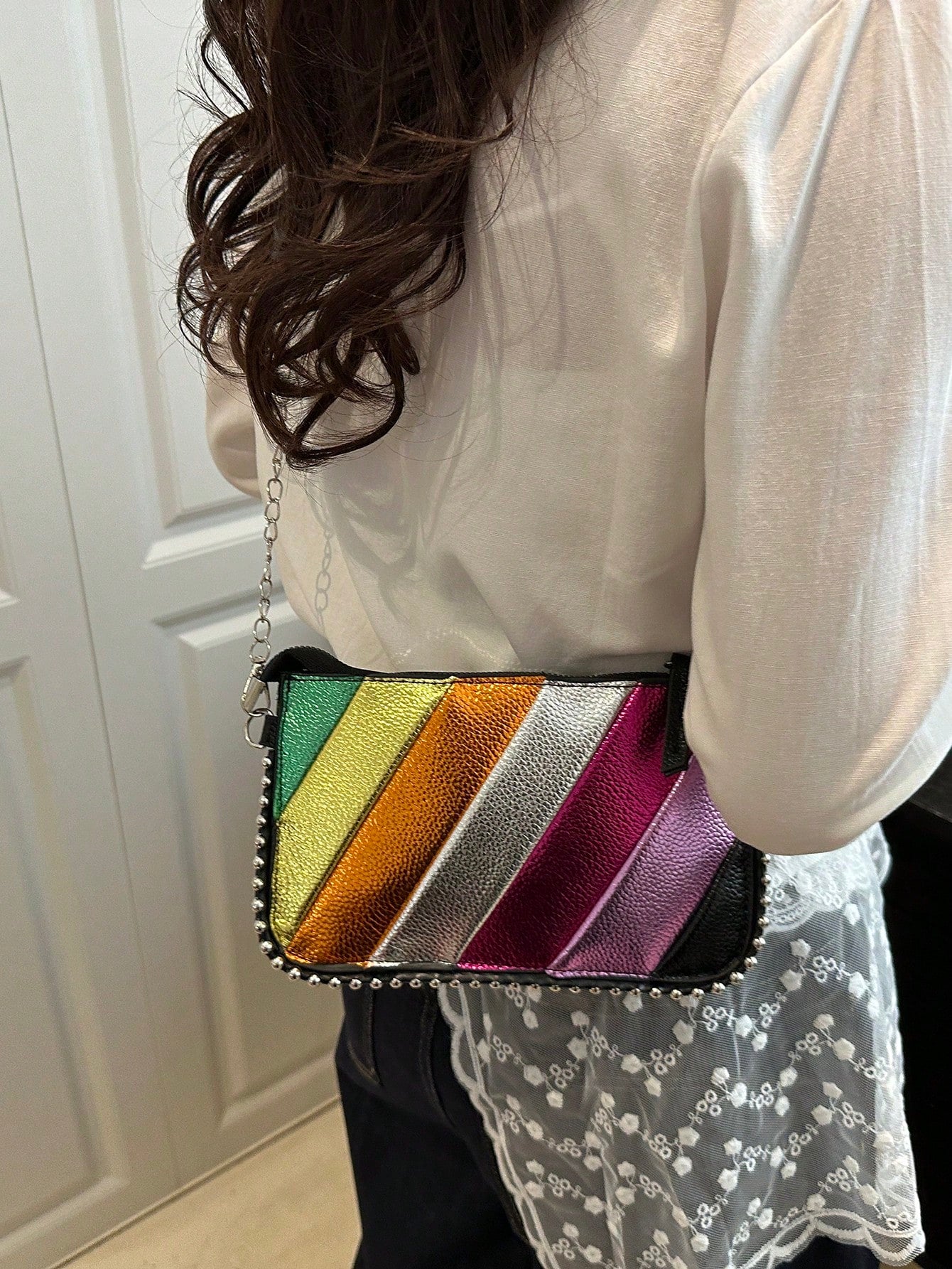 Colorful Striped Women Handbag New Fashion Charm Shoulder Bag Chain Crossbody Clutch, Popular Foreign Trade