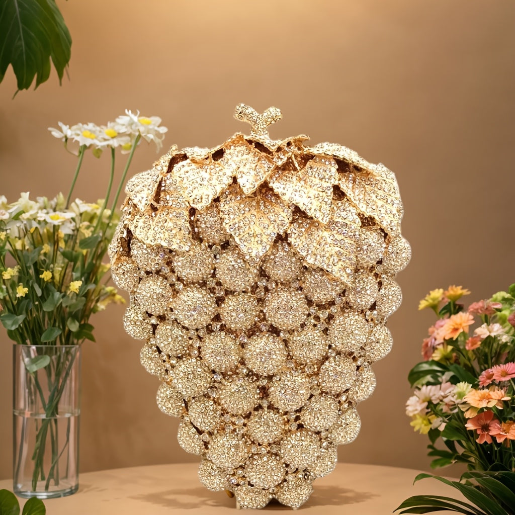 Elegant Golden Rhinestone Grape Cluster Evening bag