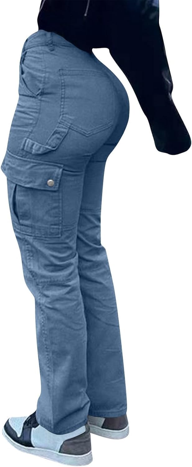 High Waisted Cargo Pants for Women Casual Baggy Cargo Jeans Straight Wide Leg pants