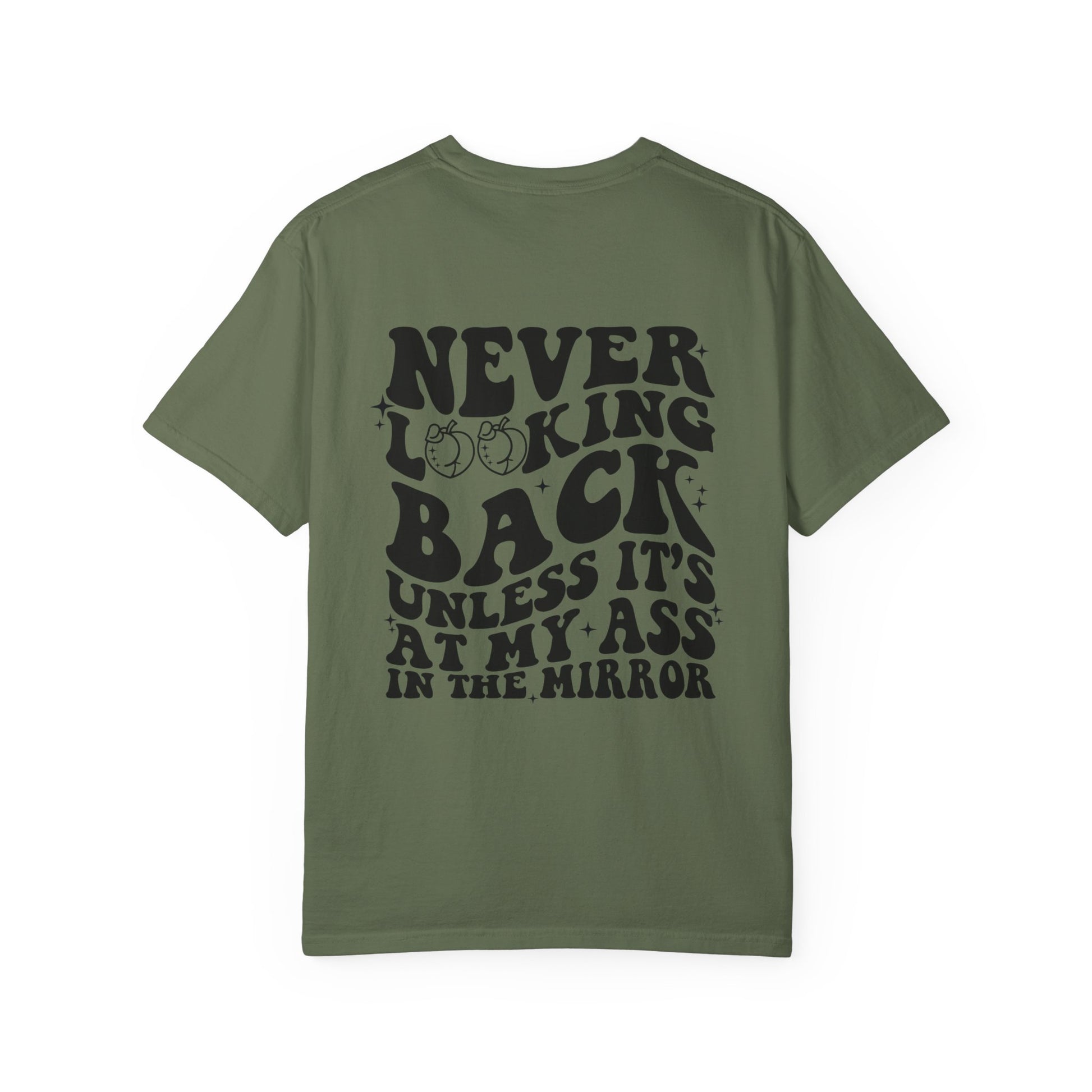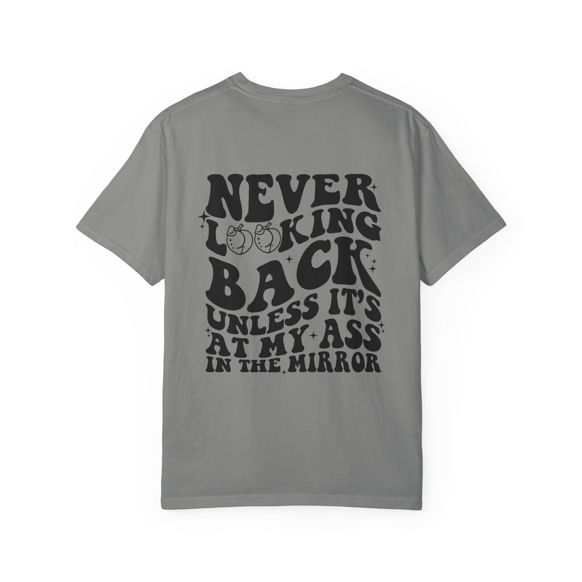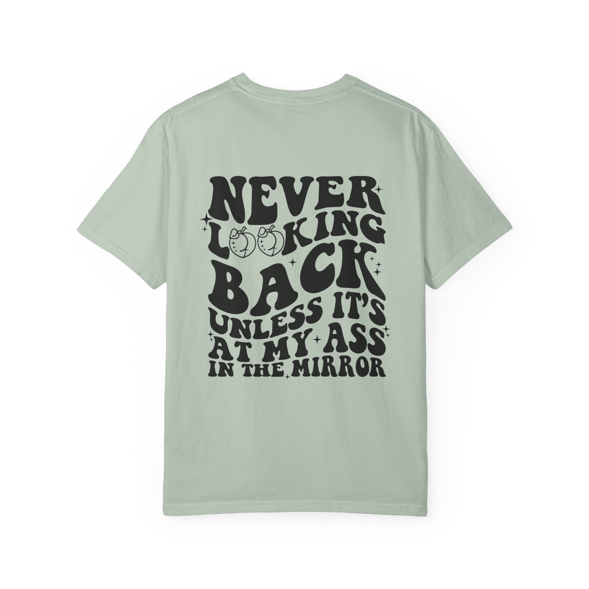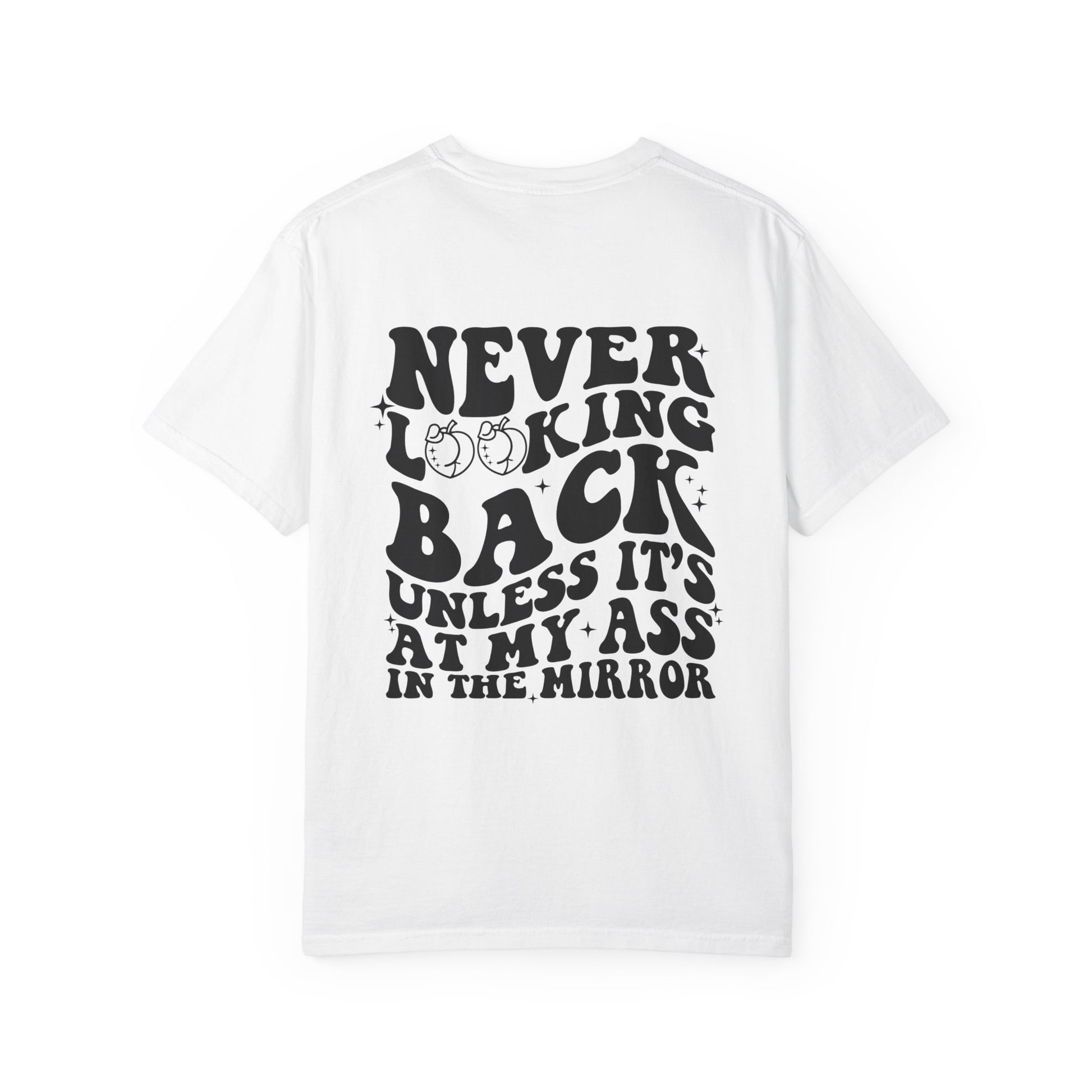 "Never looking back" Playful Unisex T-Shirt with Reflective Message, Motivational Tee
