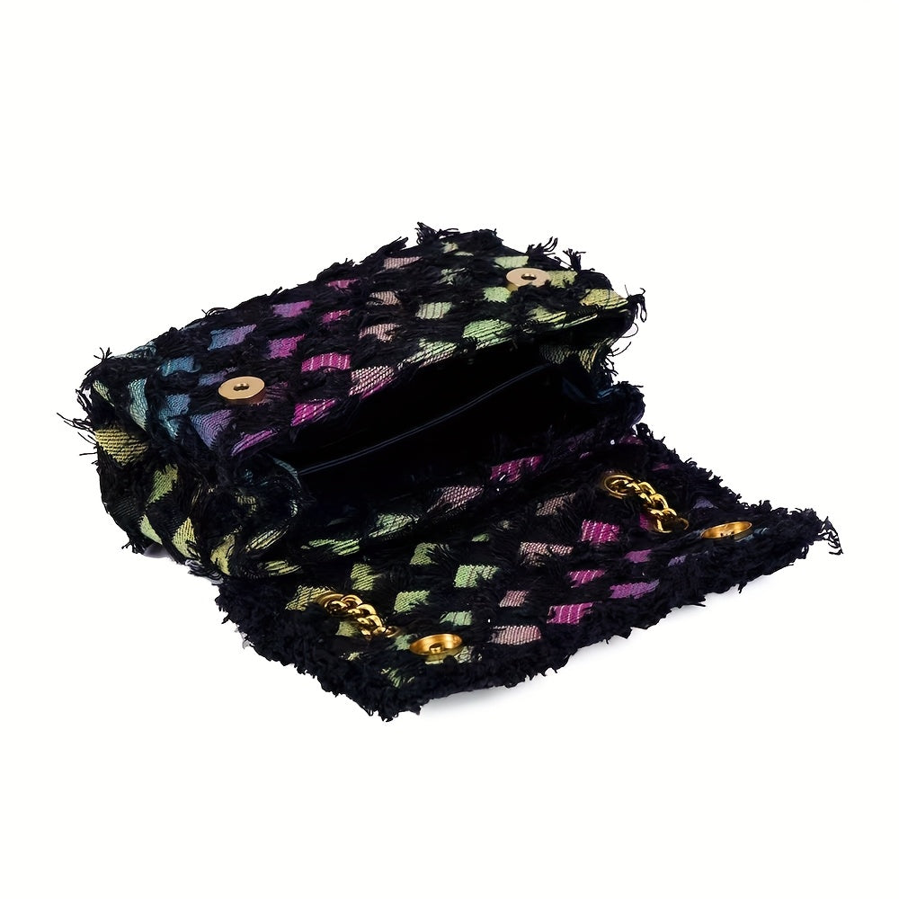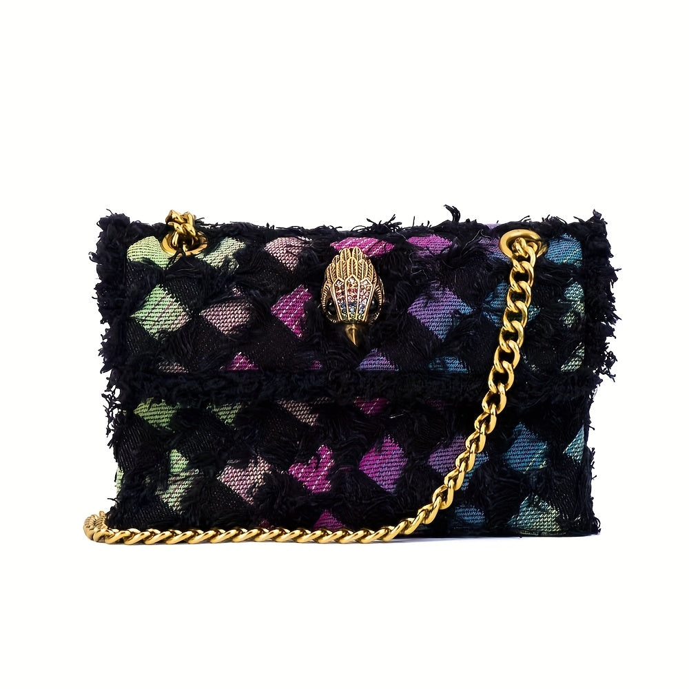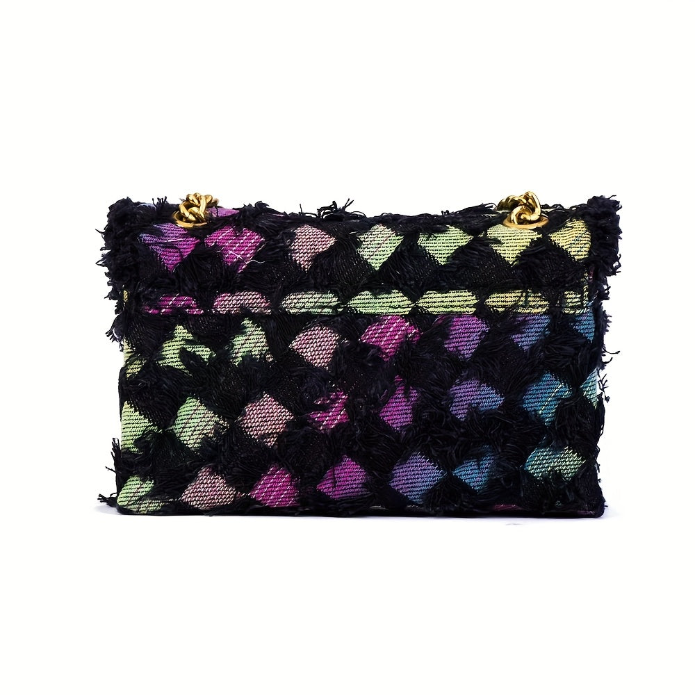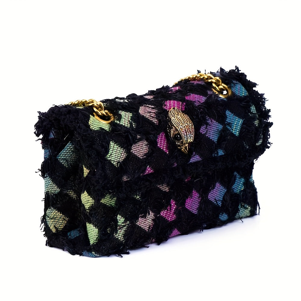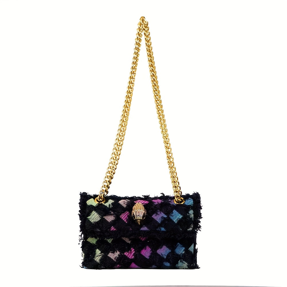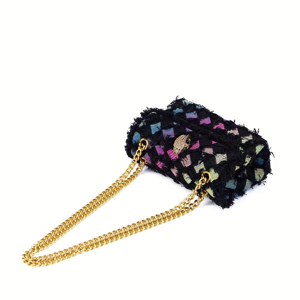 Quilted Denim Women’s Shoulder Bag with Golden Chain Strap