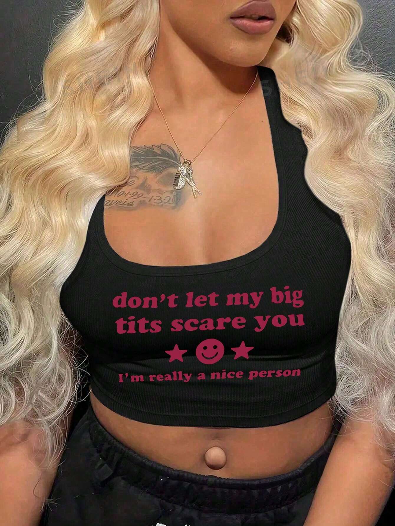 Plus Size Women's Simple Printed Tank Top Women Graphic Top For Summer