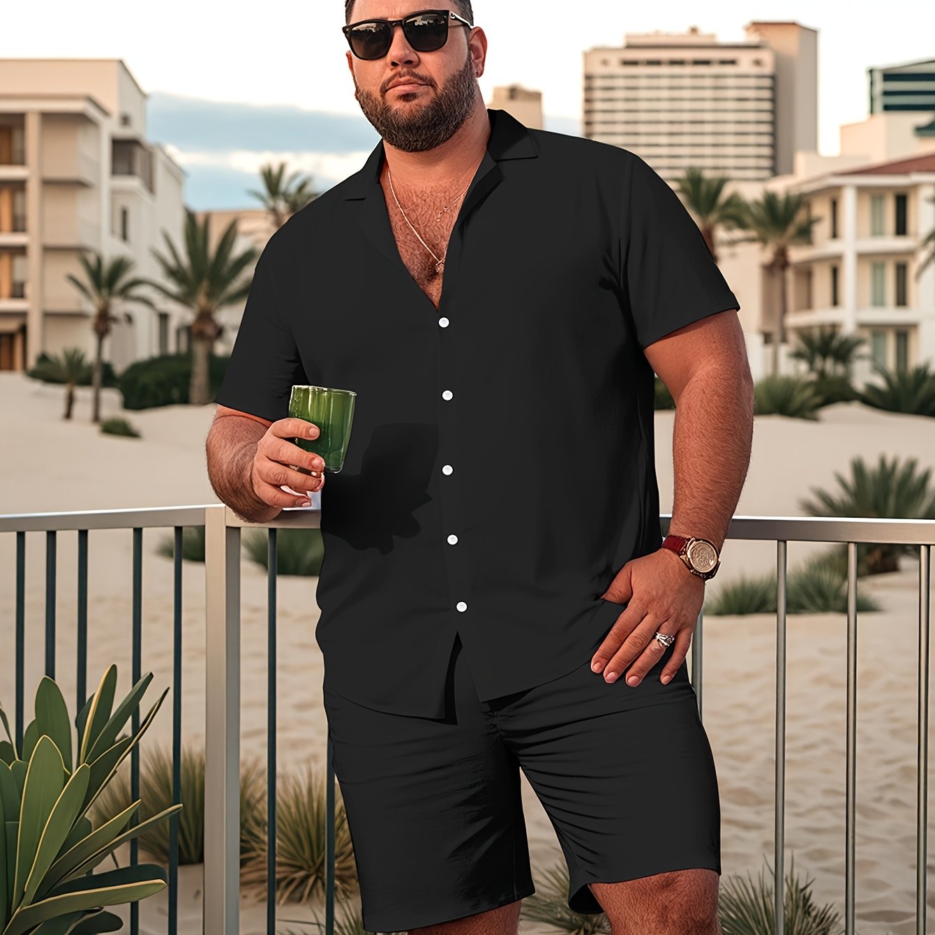 Type:Short-sleeve shirt + shorts set